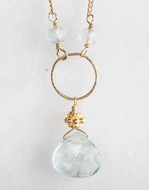 Gold Blue Zircon With Aqua Pendant Detail